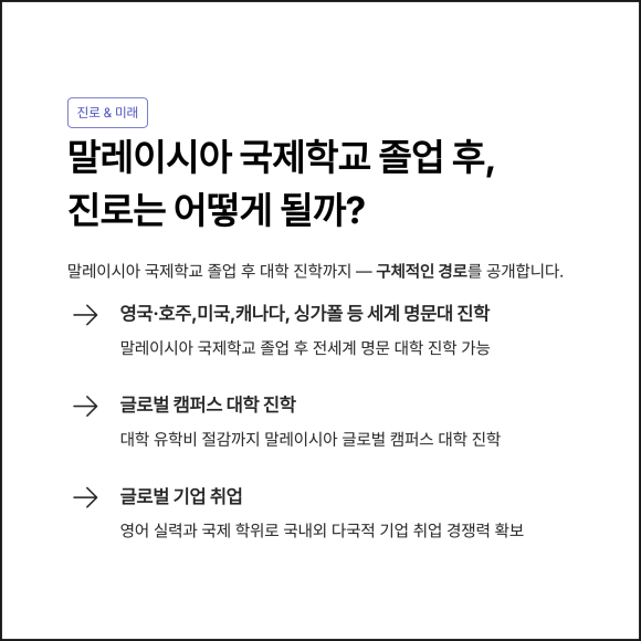 특히 말레이시아 국제학교를 거쳐 해외 대학으로 이어지는 진학 구조는