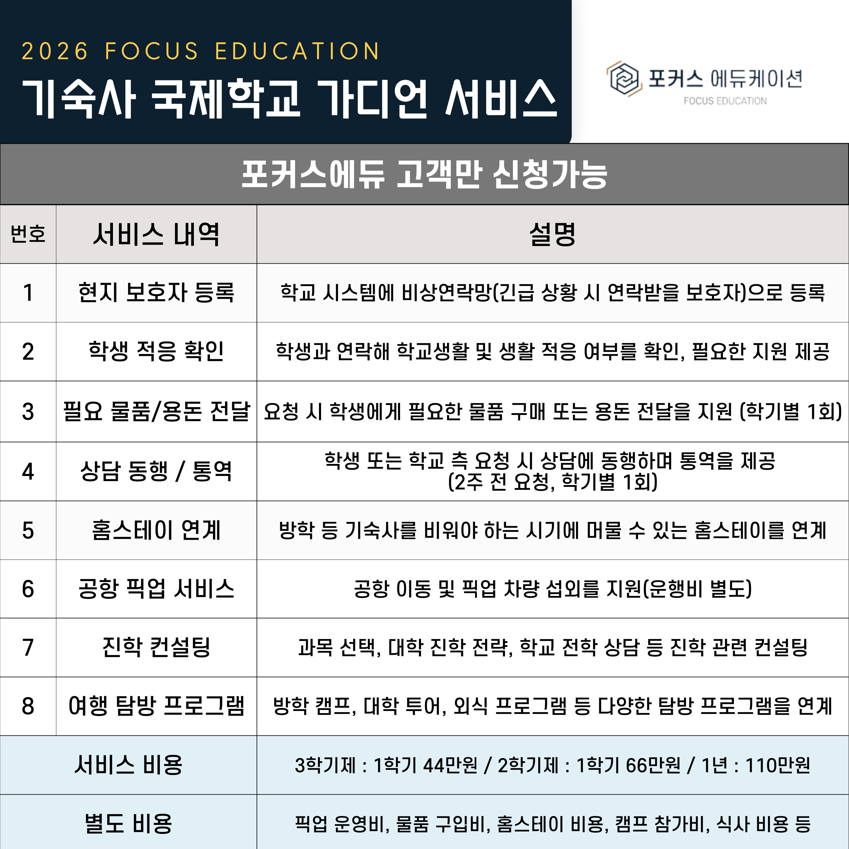 기숙사 국제학교 입학서비스 / 가디언 서비스